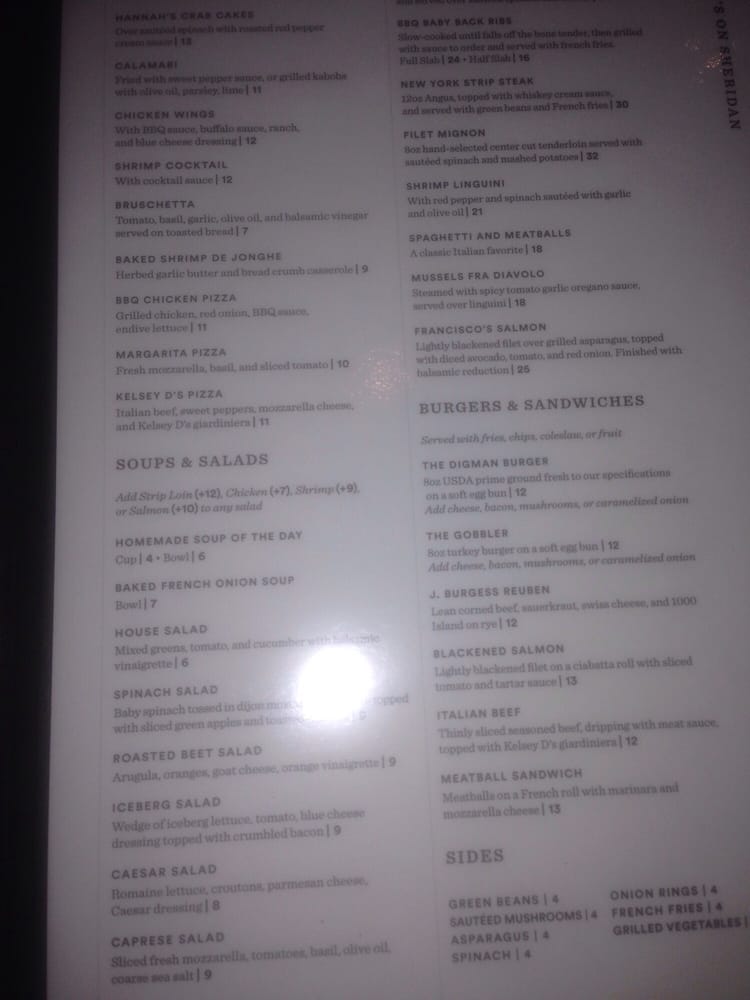 Scotty's on Sheridan Menu